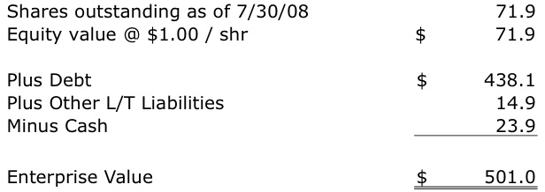 Enterprise Value at $1.00 Share based on 6/30/08 Balance Sheet ($MM):